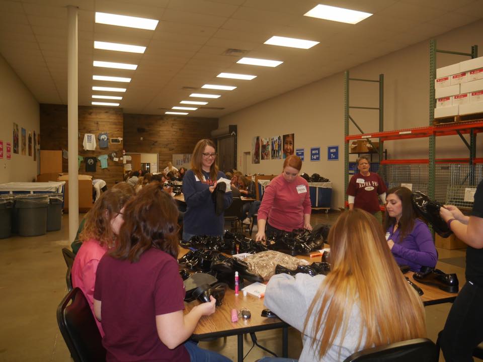 Volunteering with the women of Delta Beta/Alpha Phi at Texas A&M University-Commerce to support Buckner Shoes for Orphan Souls. Lots of fun and sisterhood. 1700 shoes processed to help provide health, hope and opportunity to feet around the world.